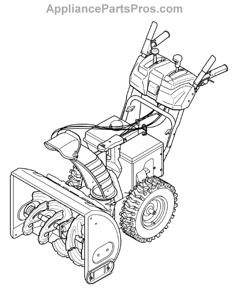 Replacement wheel assembly for gas snowblowers. Includes metal hub and treaded tire. Needed when original wheel is cracked, worn, or damaged from use.