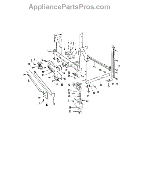 This factory screw secures appliance components to their mounting points. Replace missing, worn, or stripped hardware to restore a tight fit, proper alignment, and quieter operation across the affected assembly.