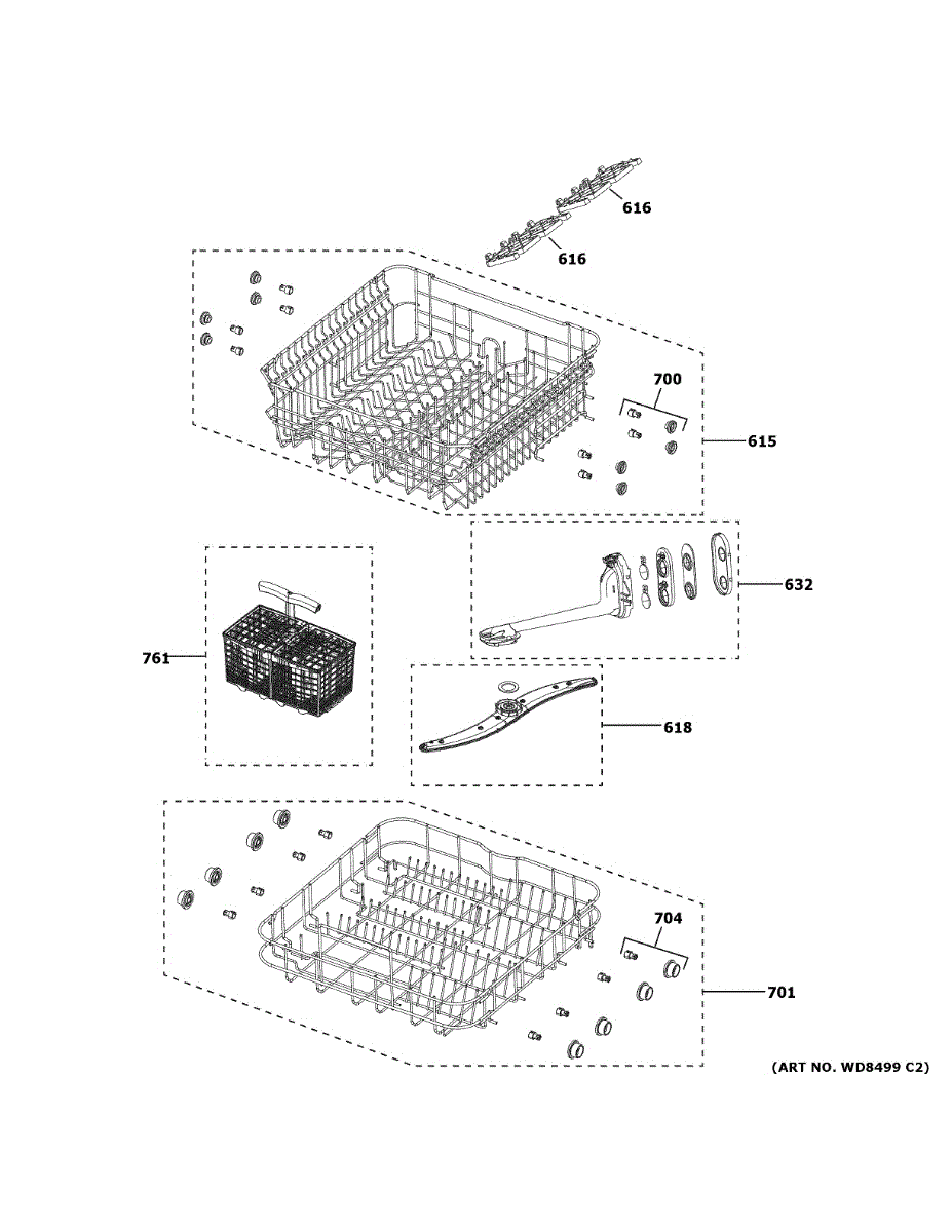 Replace your dishwasher's upper dishrack assembly when rust, cracks, or broken tines appear. Restores smooth gliding and secure storage for cups and bowls.
