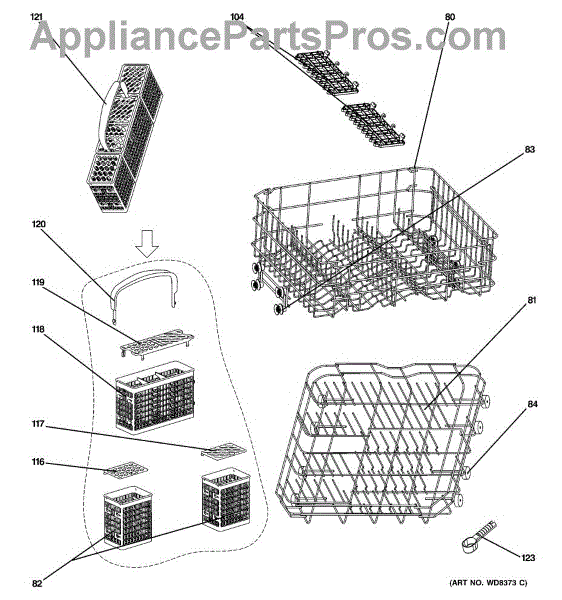 The Silverware Basket is an OEM part for GE dishwashers. It is designed to hold silverware and small utensils securely during the washing cycle, ensuring they are properly cleaned and sanitized.