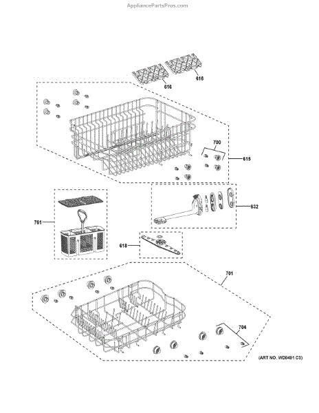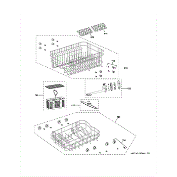 This upper rack assembly replaces a worn or damaged dishwasher upper rack to securely hold cups, glasses and small dishes for normal cleaning. It restores proper support and alignment for top-rack loading. What it does: