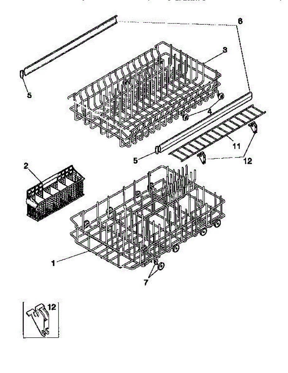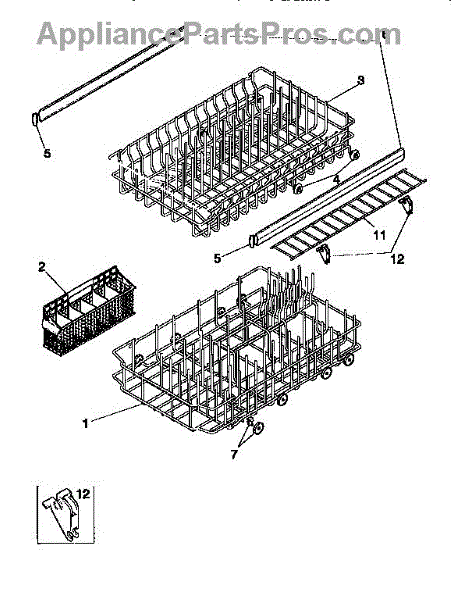 Replacement silverware basket for dishwashers. Holds utensils during wash cycles. Needed when original basket is cracked, broken, or missing.