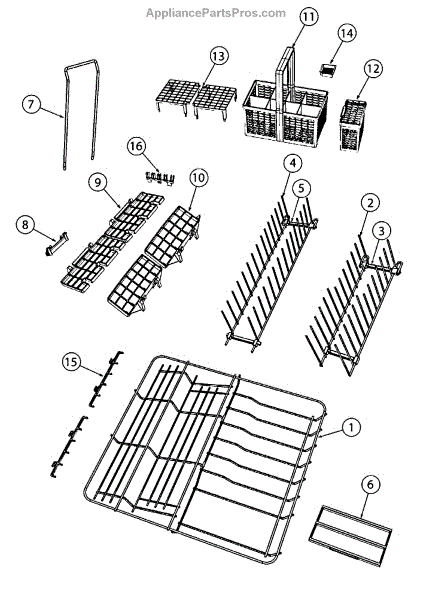 A lower base rack assembly that supports dishes and cookware and restores proper loading and sliding function in the dishwasher. Replaces a worn, bent, or damaged lower rack to keep items secure during cycles. What it does: