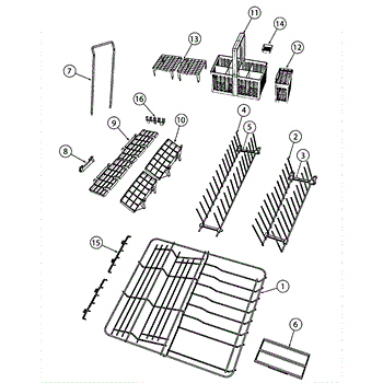 A lower base rack assembly that supports dishes and cookware and restores proper loading and sliding function in the dishwasher. Replaces a worn, bent, or damaged lower rack to keep items secure during cycles. What it does: