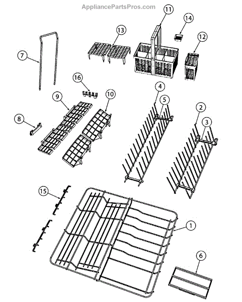 A lower base rack assembly that supports dishes and cookware and restores proper loading and sliding function in the dishwasher. Replaces a worn, bent, or damaged lower rack to keep items secure during cycles. What it does: