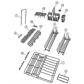 A lower base rack assembly that supports dishes and cookware and restores proper loading and sliding function in the dishwasher. Replaces a worn, bent, or damaged lower rack to keep items secure during cycles. What it does: