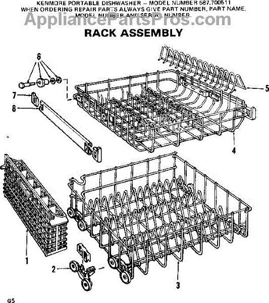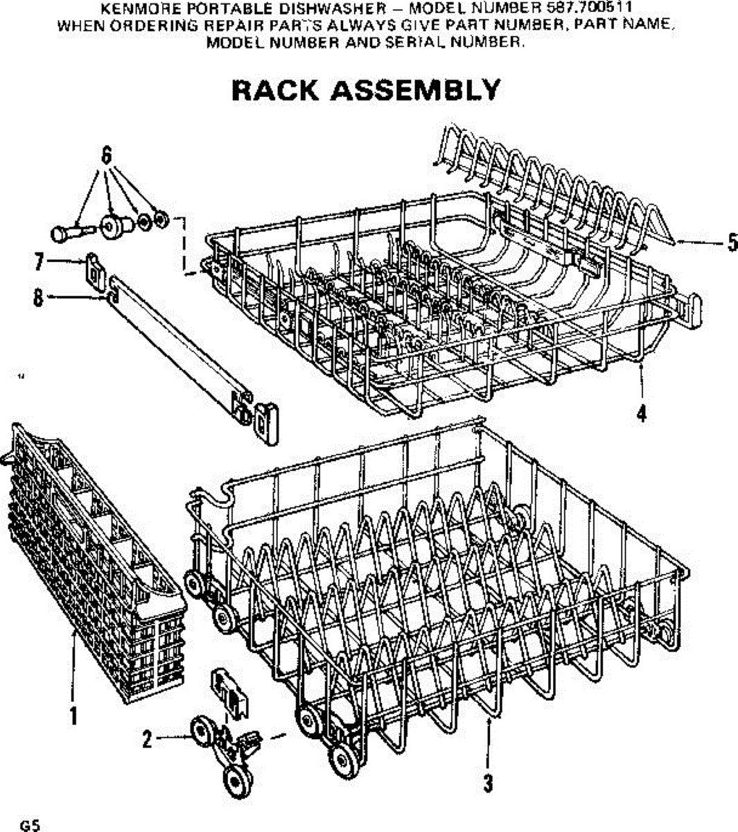 Parts for Kenmore 587.700511 (587700511, 587 700511): Rack Assembly Parts