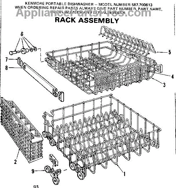 Parts for Kenmore 587.700613 (587700613, 587 700613): Rack Assembly Parts