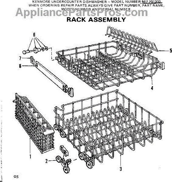 Parts for Kenmore 587.701300 (587701300, 587 701300): Rack Assembly Parts