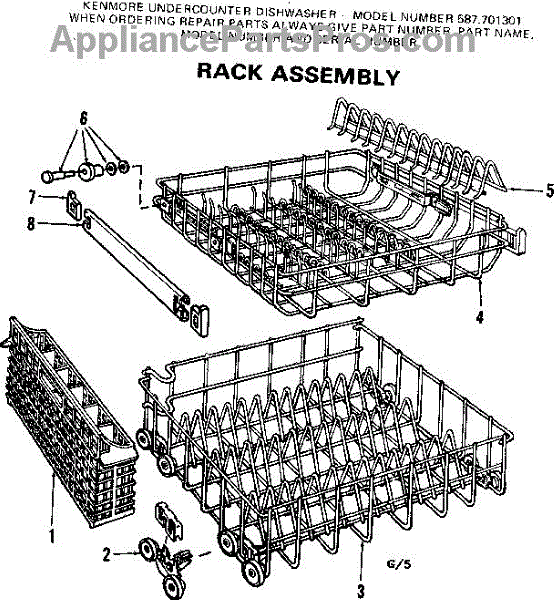 Parts for Kenmore 587.701301 (587701301, 587 701301): Rack Assembly Parts