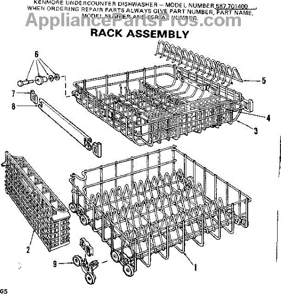 Parts for Kenmore 587.701400 (587701400, 587 701400): Rack Assembly Parts