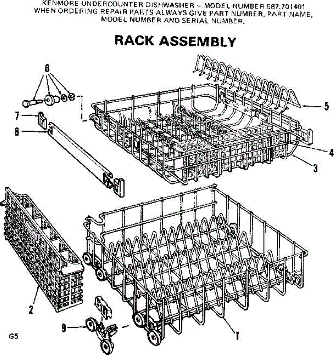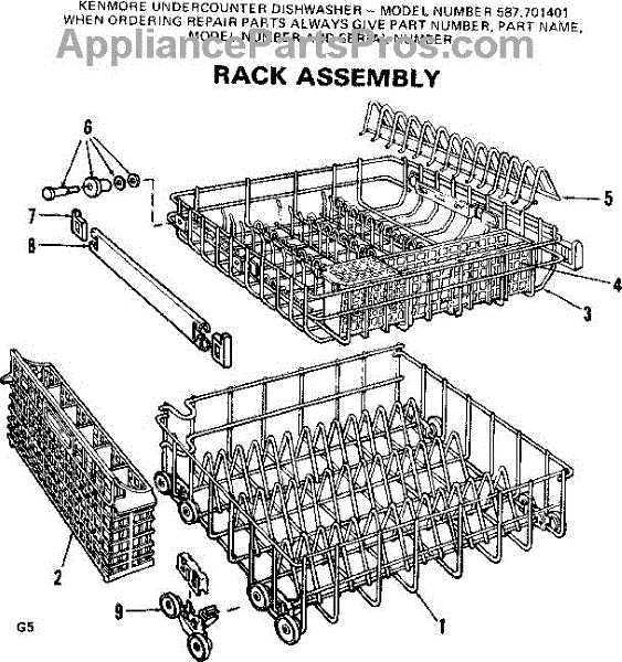 Parts for Kenmore 587.701401 (587701401, 587 701401): Rack Assembly Parts