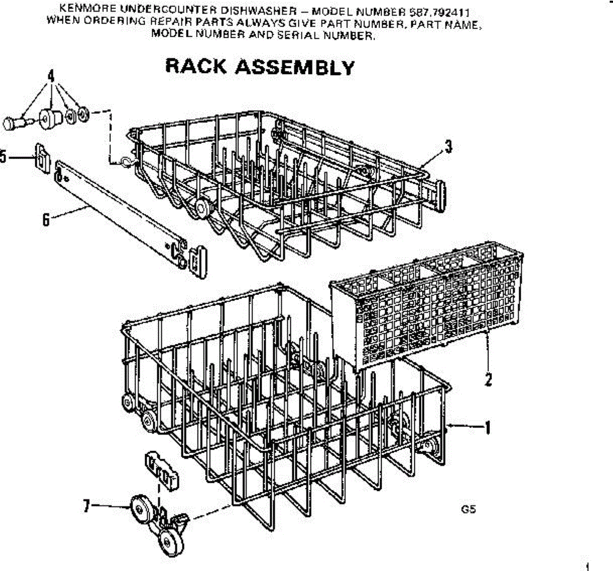 Parts for Kenmore 587.792411 (587792411, 587 792411): Rack Assembly Parts
