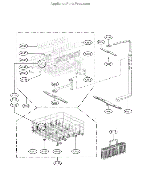 The Rack Assembly is an OEM replacement part for LG dishwashers. It is the lower dish rack used to store and hold dishes during all wash cycles. Causes of a faulty rack assembly can be damage such as cracks or broken wires, especially after extended use or improper loading that puts excess strain on the components. Symptoms of a bad rack assembly include: