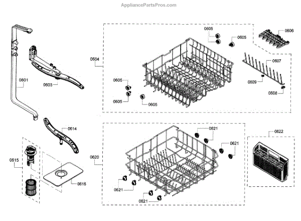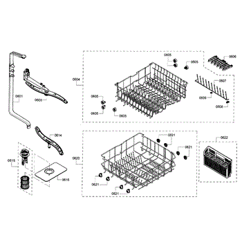 The Upper Dishrack Assembly is an OEM replacement part for Bosch dishwashers. Causes of a bad assembly include cracked or broken rack modules from years of abusive slamming during loading. Mineral buildup may also lead to jammed or stuck tines no longer gliding freely between positions. Symptoms of a bad Upper Dishrack include: