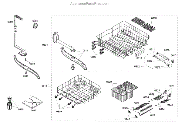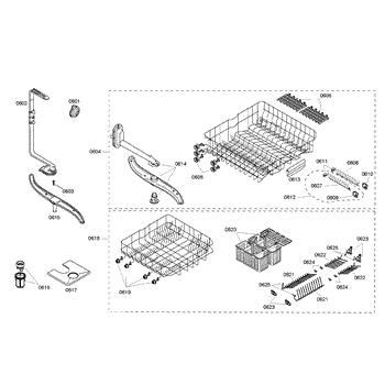 Parts for Bosch SHE46C05UC/33: Rack Assembly Parts