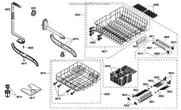 Parts for Bosch SHE46C05UC/43: Rack Assembly Parts