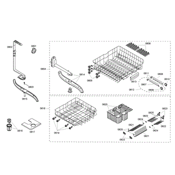 Parts for Bosch SHE46C06UC/40: Rack Assembly Parts
