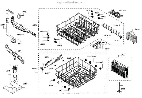The Upper Dishrack Assembly is an OEM replacement part for Bosch dishwashers. Causes of a bad assembly include cracked or broken rack modules from years of abusive slamming during loading. Mineral buildup may also lead to jammed or stuck tines no longer gliding freely between positions. Symptoms of a bad Upper Dishrack include:
