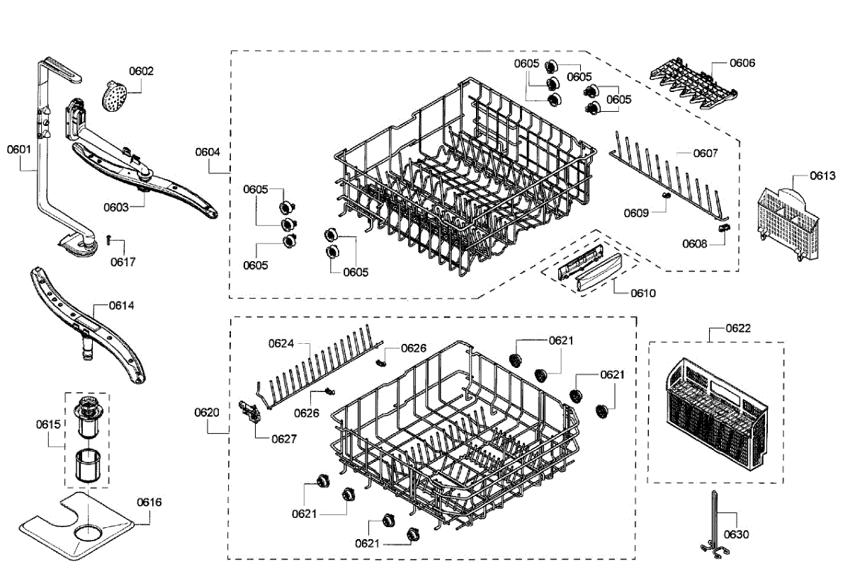 Replacement rack insert for dishwashers. Secures dishes and utensils in place during wash cycles. Needed when original is cracked, broken, or missing.
