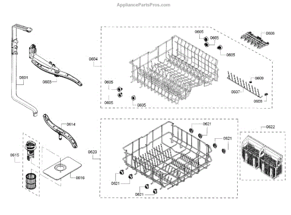 Causes of a bad insert can include wear and tear of moving parts over time, mineral buildup that impairs movement, or damage to shelves or tines that prevent proper function.