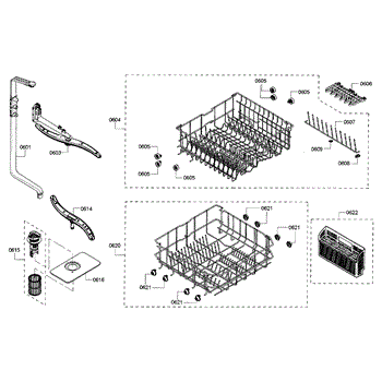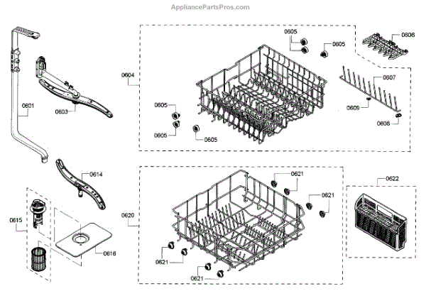 The Upper Dishrack Assembly is an OEM replacement part for Bosch dishwashers. Causes of a bad assembly include cracked or broken rack modules from years of abusive slamming during loading. Mineral buildup may also lead to jammed or stuck tines no longer gliding freely between positions. Symptoms of a bad Upper Dishrack include: