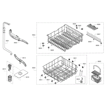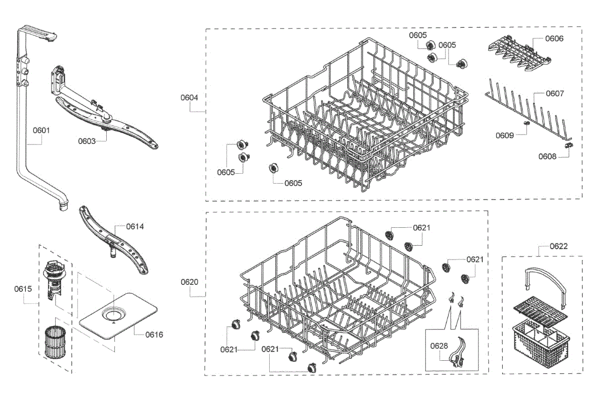Captures debris before it enters the pump system. Replace when clogged, calcified, or damaged to prevent E22 errors and ensure clean dishes. Verify fit.