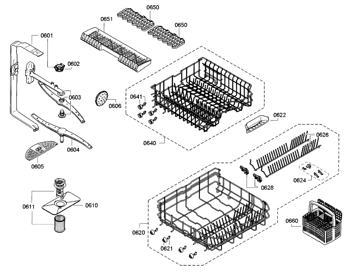 The Lower Dishrack is an OEM part for Bosch dishwashers. It provides the necessary rack space for washing dishes beneath the upper rack level.
