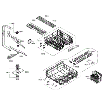 The Lower Dishrack is an OEM part for Bosch dishwashers. It provides the necessary rack space for washing dishes beneath the upper rack level.