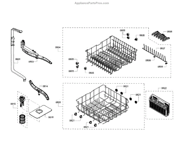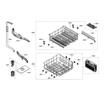 The Upper Dishrack Assembly is an OEM replacement part for Bosch dishwashers. Causes of a bad assembly include cracked or broken rack modules from years of abusive slamming during loading. Mineral buildup may also lead to jammed or stuck tines no longer gliding freely between positions. Symptoms of a bad Upper Dishrack include:
