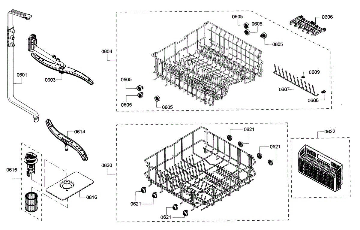 Parts for Bosch SHE3AR55UC/20: Rack Parts
