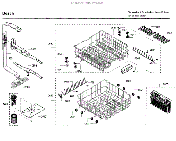 Parts for Bosch SHE3AR72UC/22: Rack Parts