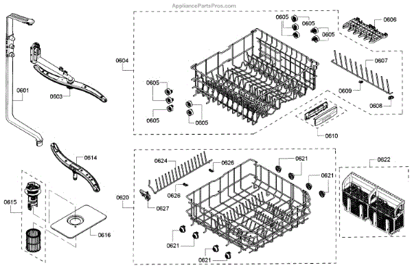 Causes of a bad assembly include cracked or broken rack modules from years of abusive slamming during loading. Mineral buildup may also lead to jammed or stuck tines no longer gliding freely between positions.