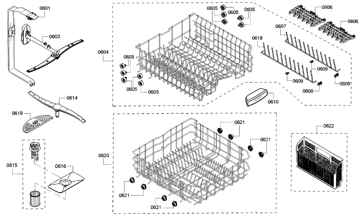 Parts for Bosch SHE53T56UC/07: Rack Parts
