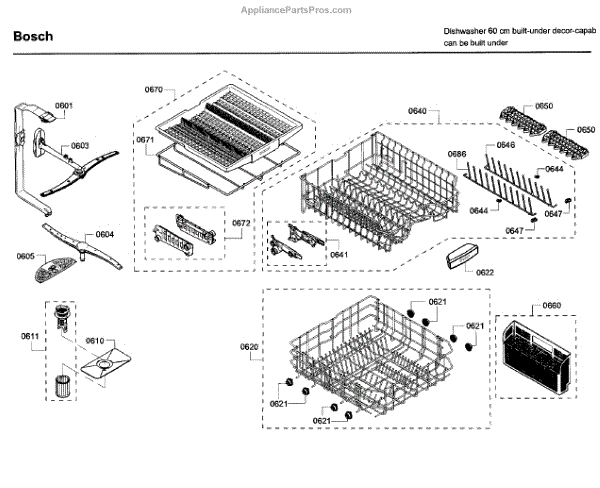 The Cover is an OEM part for Bosch dishwashers. It provides a protective barrier that shields internal components from damage and extends the life of the appliance. The cover is exposed to heat, humidity, and debris during each wash cycle. Over time and repeated use, these conditions can cause cracks, warping or breakdown of the protective plastic material. Causes of a bad cover include normal wear and tear, accidental dents or punctures, and exposure to excess heat or chemicals. Symptoms of a cover needing replacement include: