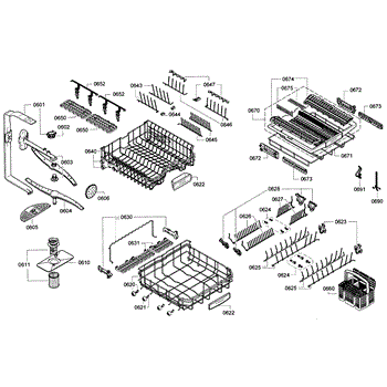 Parts for Bosch SHE9PT55UC/01: Rack Parts
