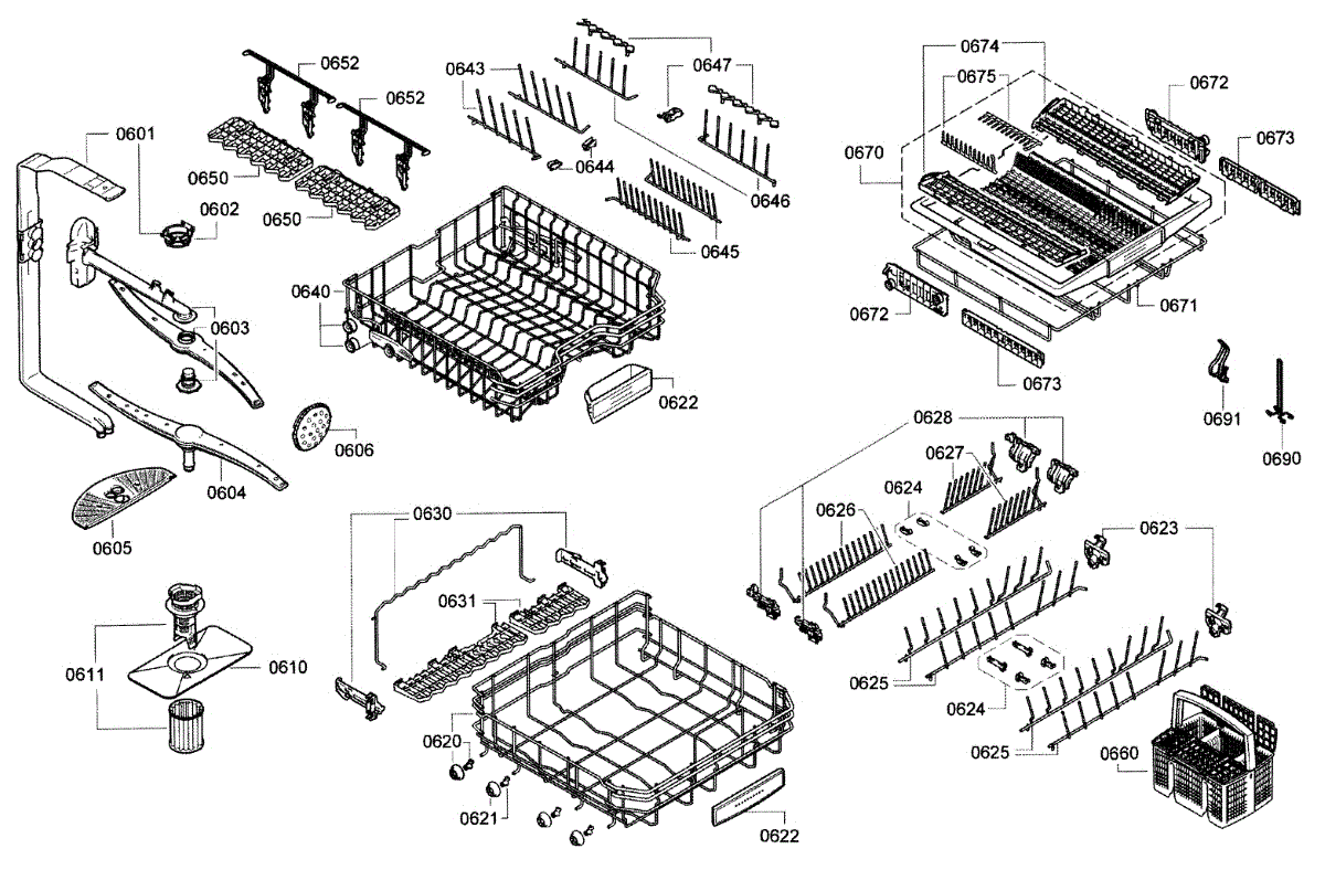 Replacement crockery basket for your dishwasher. Holds plates, cups, and saucers at adjustable levels. Replaces cracked, broken, or damaged baskets.