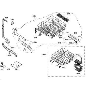 The Silverware Basket Assembly is an OEM part for Bosch dishwashers. This basket is located in the lower rack and is used to hold utensils securely during the wash cycle.