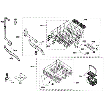 The Silverware Basket Assembly is an OEM part for Bosch dishwashers. This basket is located in the lower rack and is used to hold utensils securely during the wash cycle.