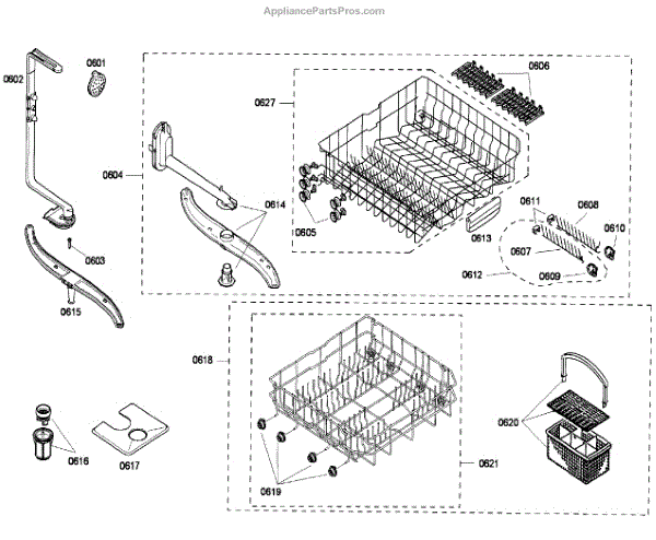 Causes of a bad silverware basket can include damage from normal wear and tear over time or bending/warping from overload.