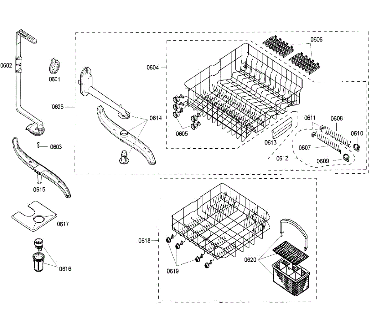 Lower dishrack assembly for dishwashers. Slides in and out for easy loading. Replace when cracked, rusted, or prongs are broken or missing.