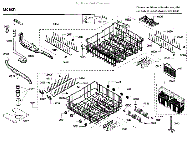 Parts for Bosch SHV68P03UC/59: Rack Parts