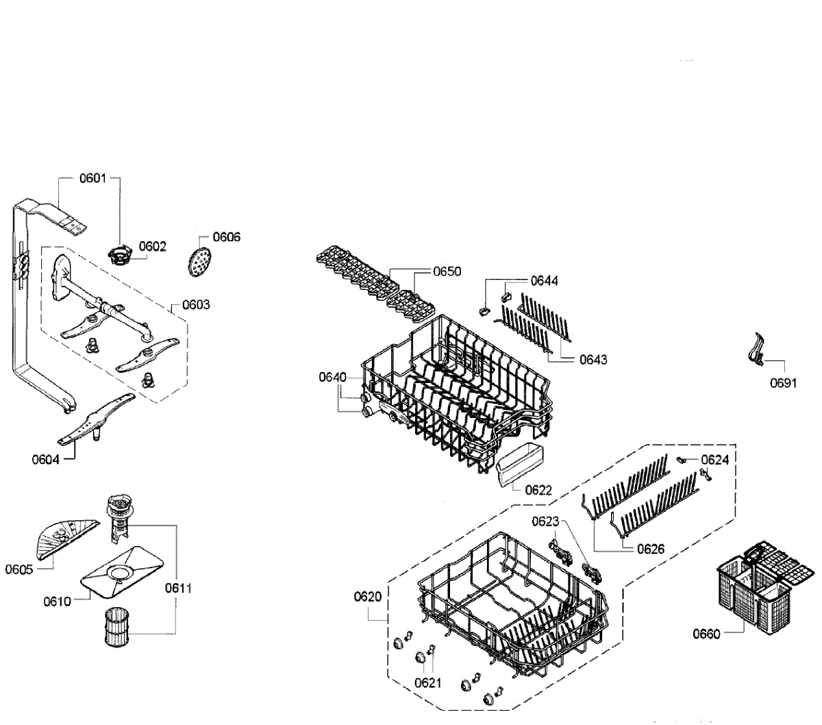 Captures debris before it enters the pump system. Replace when clogged, calcified, or damaged to prevent E22 errors and ensure clean dishes. Verify fit.