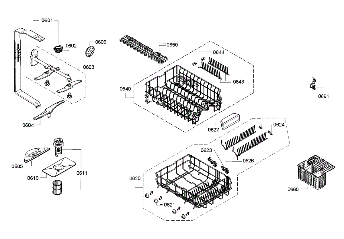 Captures debris before it enters the pump system. Replace when clogged, calcified, or damaged to prevent E22 errors and ensure clean dishes. Verify fit.