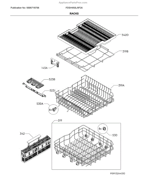 This rack assembly replaces a damaged or worn refrigerator/dishwasher rack to restore stable storage and smooth operation of the shelving system. Durable wire construction keeps items supported and organizes interior space. What it does: