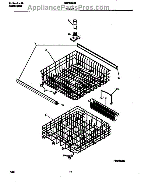 The Lower Rack Assembly is an OEM part for Frigidaire dishwashers. This rack is designed to hold dishes, cups, glasses and other utensils securely in place on the lower level during the washing cycle.