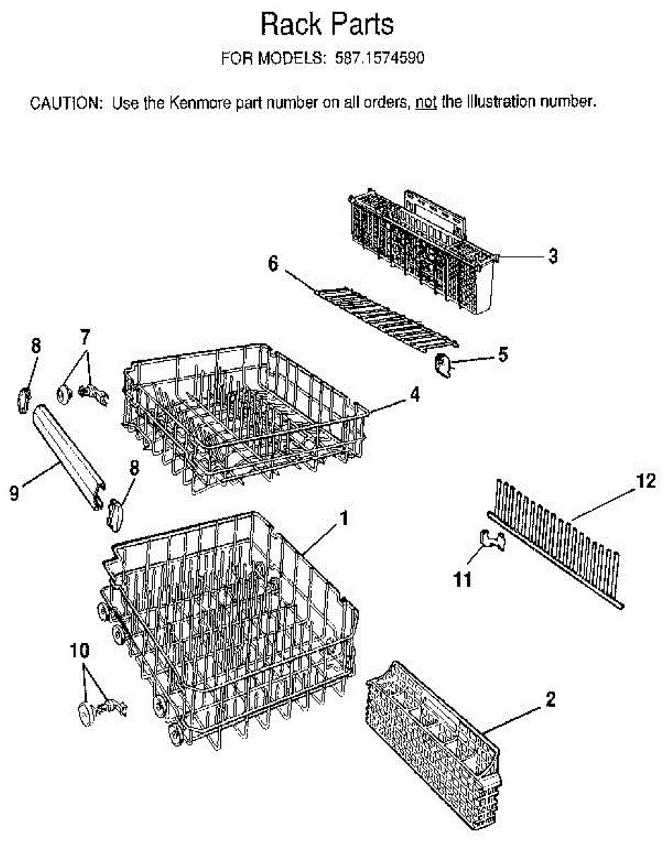 Replacement silverware basket for dishwashers. Holds utensils during wash cycles. Needed when original basket is cracked, broken, or missing.