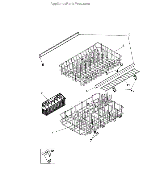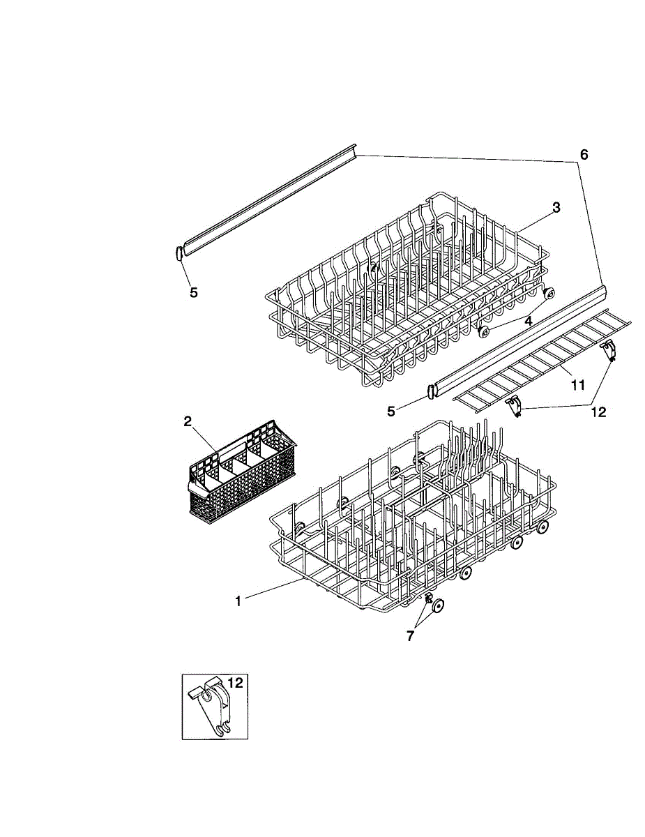 Replacement silverware basket for dishwashers. Holds utensils during wash cycles. Needed when original basket is cracked, broken, or missing.
