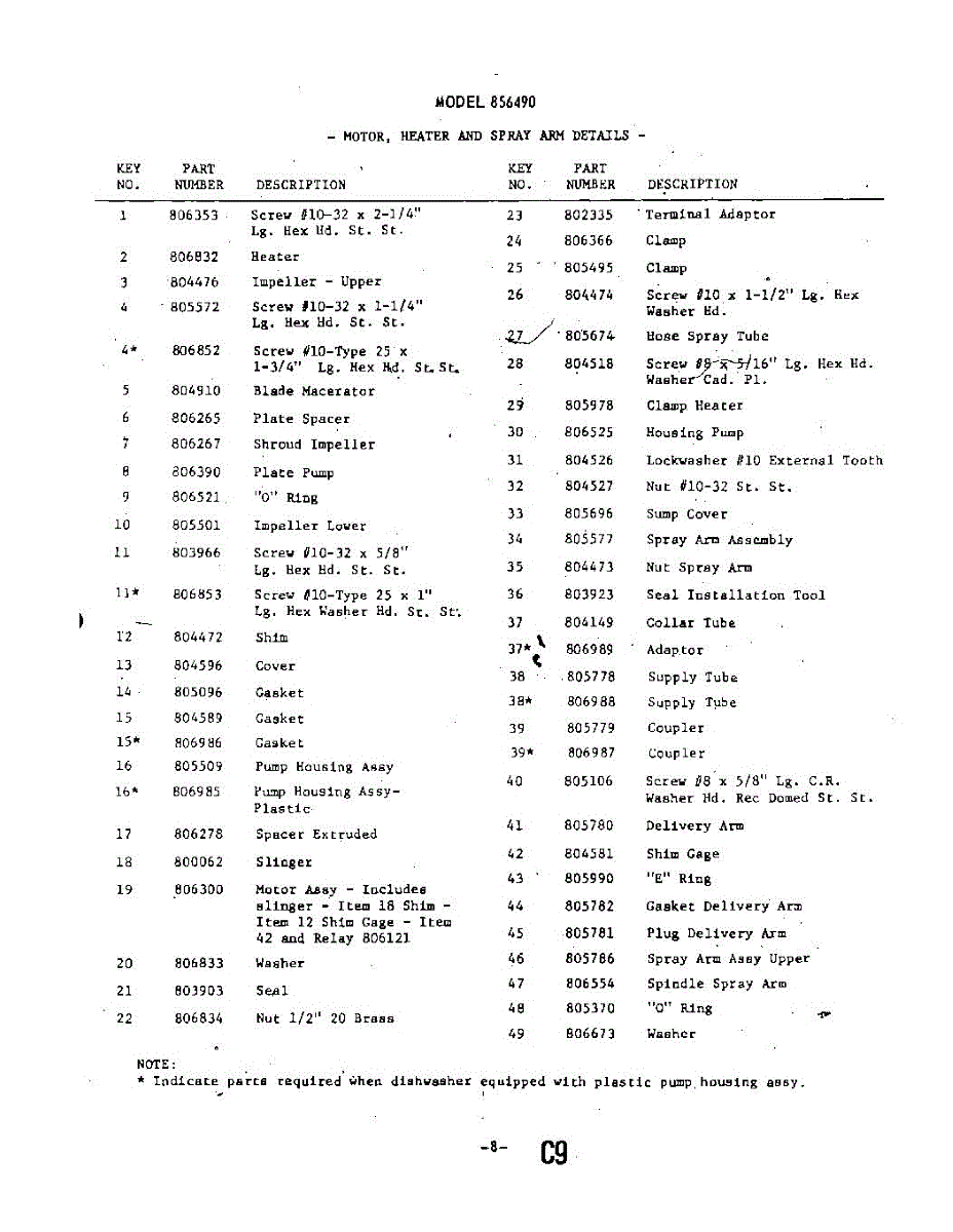 Parts for Whirlpool 8564900: 09 - Rack Parts