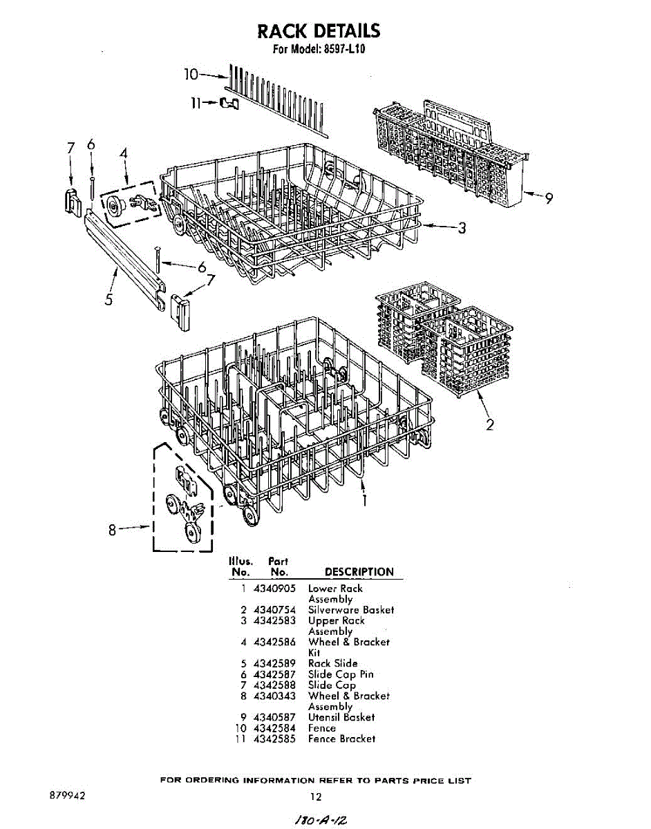 Parts for Whirlpool 8597L10: 12 - Rack Parts